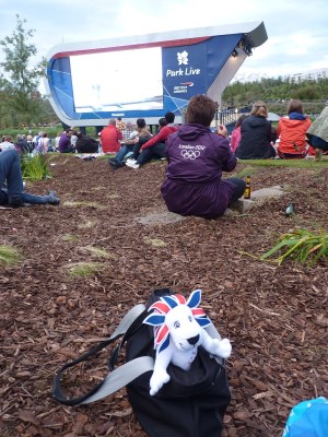 | Watching the Athletics on the big screen in the Olympic Park |